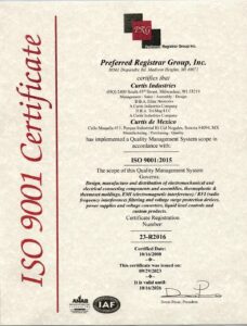 Curtis Industries, an electrical component manufacturer, is proud to be an ISO 9001:2015 certified electrical component manufacturer. Having an ISO 9001:2015 certification is a sign of quality products and practices. The ISO 9001 scope of endorsement includes all aspects of the design, manufacturing and distribution of Curtis Industries products including: